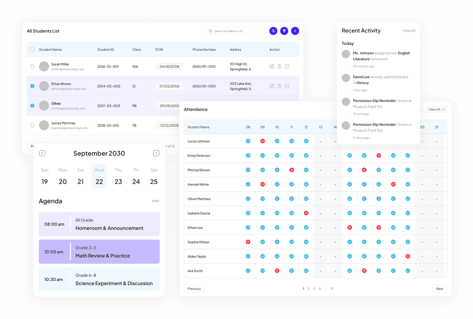 Streamline daily school management from students to staff. keep everything organized in one place.